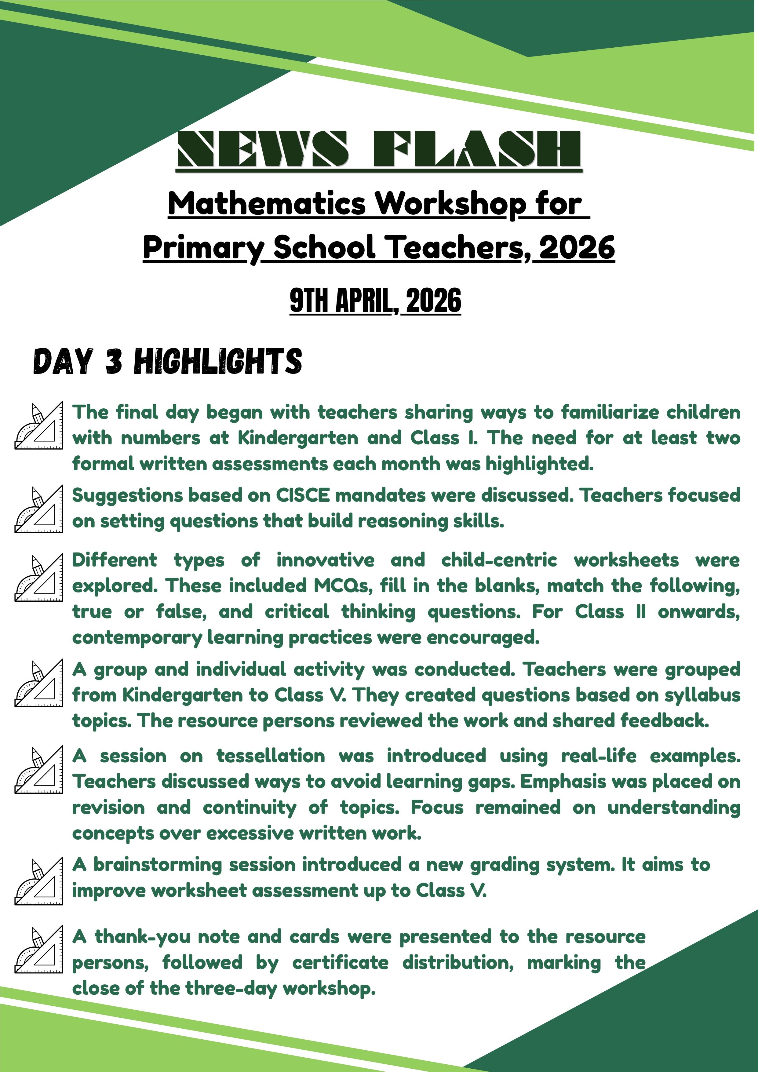 MATHEMATICS WORKSHOP FOR PRIMARYB SCHOOL TEACHERS